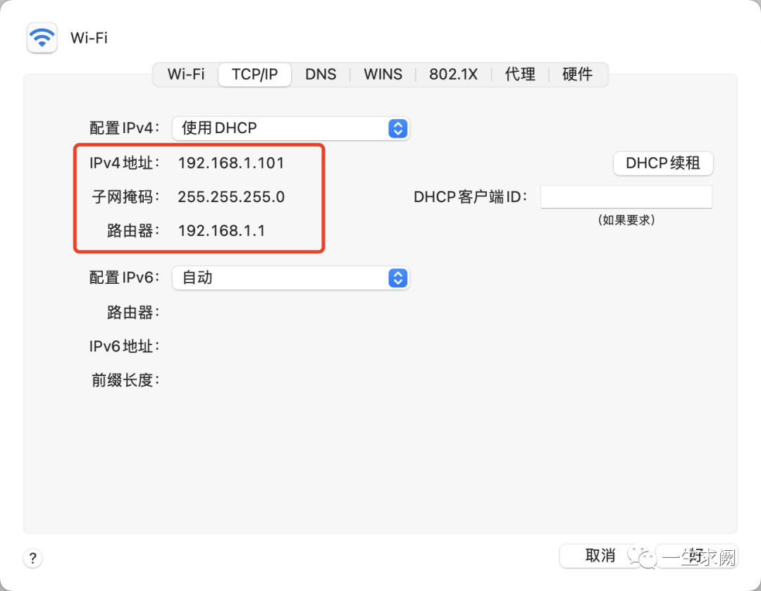 再查看自己mac电脑的ip地址,默认网关等信息: