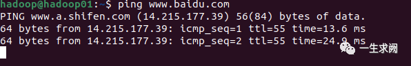 看是否成功,通过ping一下外网看是否可以上网,能ping通就是可以了