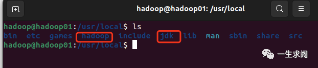 hadoop@hadoop01:~$ sudo tar -zxvf hadoop-3.2.1.tar.gz -C /usr/local #-C参数是指定解压到哪个目录下hadoop@hadoop01:~$ sudo tar -zxvf jdk-8u351-linux-aarch64.tar.gz -C /usr/localhadoop@hadoop01:~$ cd usr/localhadoop@hadoop01:~$ ls #应该可以看到解压的文件了#接着将两份文件名字分别hadoop和jdkhadoop@hadoop01:/usr/local$ sudo mv ./xxx(你的hadoop文件名) ./hadoophadoop@hadoop01:/usr/local$ sudo mv ./xxx(你的jdk文件名) ./jdk