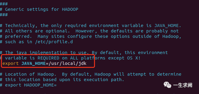 hadoop@hadoop01:/usr/local/hadoop/etc/hadoop$ sudo vim hadoop-env.sh在文件里添加如下内容:export JAVA_HOME=/usr/local/jdk