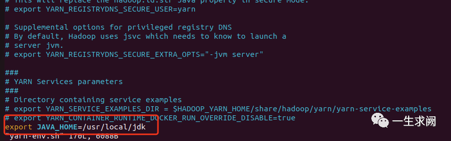 hadoop@hadoop01:/usr/local/hadoop/etc/hadoop$ sudo vim yarn-env.sh在文件里添加如下内容:export JAVA_HOME=/usr/local/jdk