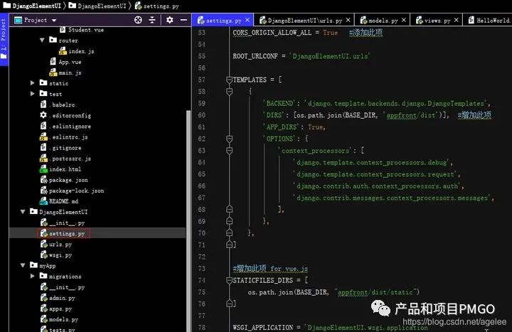 4.前后台连接需要在前端引入vue-resource,Django需要引入django-cors-headers