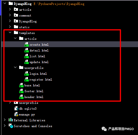 本系统我们总共涉及三个功能模块用户,文章和评论管理,所以我们创建三个app分别管理文件。