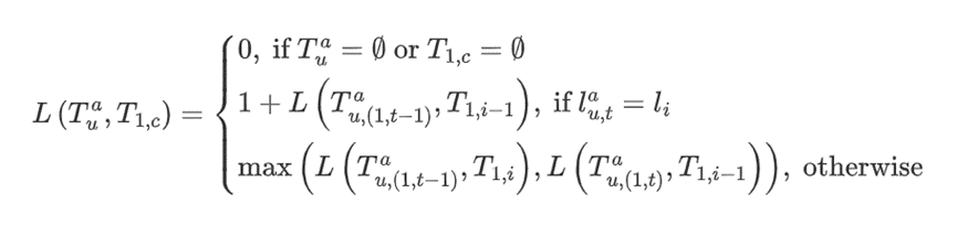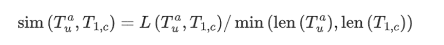 进行微调,其中相似度利用与T1,c的最长公共子序列(LCSS)进行评估获得: