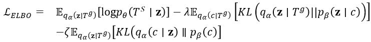 通过下文联合优化方法对模型进行适当的训练,就可以确定潜在表示的高斯混合分布,即找到轨迹中隐藏的潜在模式。同时,轨迹表示在潜在空间的分布被识别的模式规格化。通过这种方式,我们将模式的知识融入到地图匹配中。轨迹匹配与生成是将轨迹表示解码,并将解码后的向量映射到地理空间,依次生成匹配的基于路段的轨迹。如图4所示我们首先从Start Of Sequence输入到End Of Sequence,我们的解码器由RNN 层,注意力层、全连接层和 softmax 层组成,首先利用一个单向GRU对最后标识进行编码,为了提高解码器的性能,注意力层也用于搜索最相关的表示向量,生成自适应上下文向量。然后传输到全连接层以确保正确的形状。最后传输到softmax层来识别匹配的路段,通过具体函数来实现段轨迹到实际地图的映射过程。为了训练L2MM,我们的目标是共同优化L2MM中的三个组成部分,即轨迹表示学习和增强、模式识别和表示以及轨迹匹配和生成。最终我们可以得到最后一个组件可以正确地生成具有潜在表示的基于分段的轨迹,该潜在表示是从通过第一个组件的基于稀疏点的轨迹导出的。同时,对潜在轨迹分布进行正则化和确定,并在潜在空间中发现轨迹背后的模式。我们分别a,b,q来表示三个组件中的参数,之后我们可以将下界写成:目标即为让下式最大化。