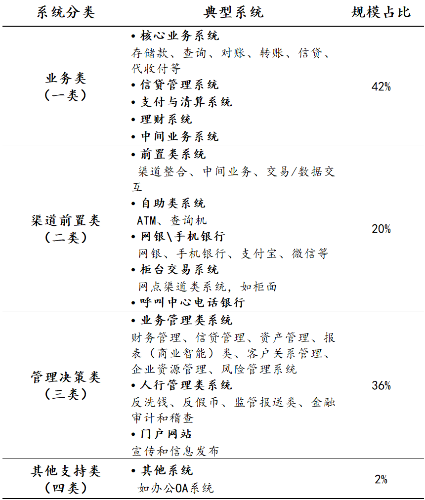 银行业务非常复杂,在一个中等体量银行中,会存在数百上千业务系统。下面从业务应用角度对系统做个简单分类。