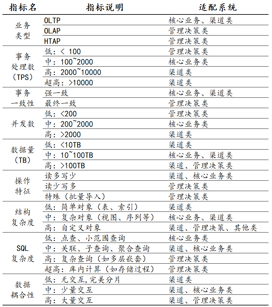 上述场景比较抽象,可再从场景的技术指标角度进行分类。下面的适配系统仅为参考,还需看业务系统的具体特点。如下图