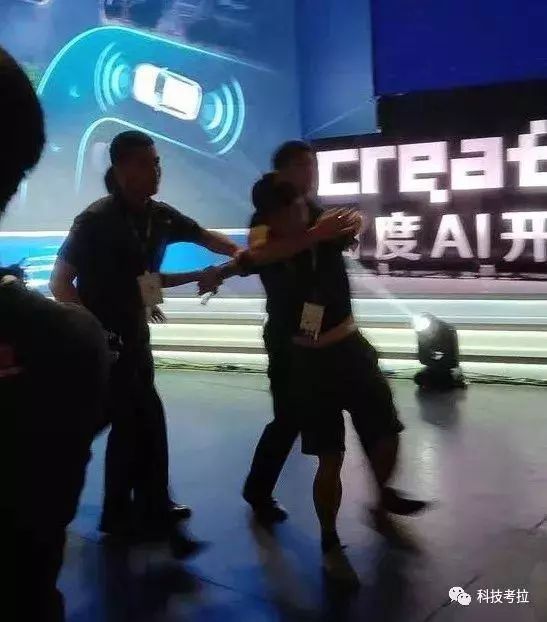 兜头一瓶矿泉水浇下,正在百度AI开发者大会上侃侃而谈的李彦宏顿时一脸懵逼,旋即淡定地表示,"在AI前进的道路上会有各种各样的事情发生,但前进的决心不会改变,AI会改变每一个人的生活。"