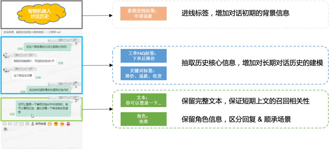 如下图3所示,针对不同的对话上文采用不同的信息抽取及建模方式,核心思想在于对于短期上文保留尽量多的信息,保证召回时的相关性,对于长期上文中的信息进行筛选过滤,只保留核心信息,提升召回的精准性。
