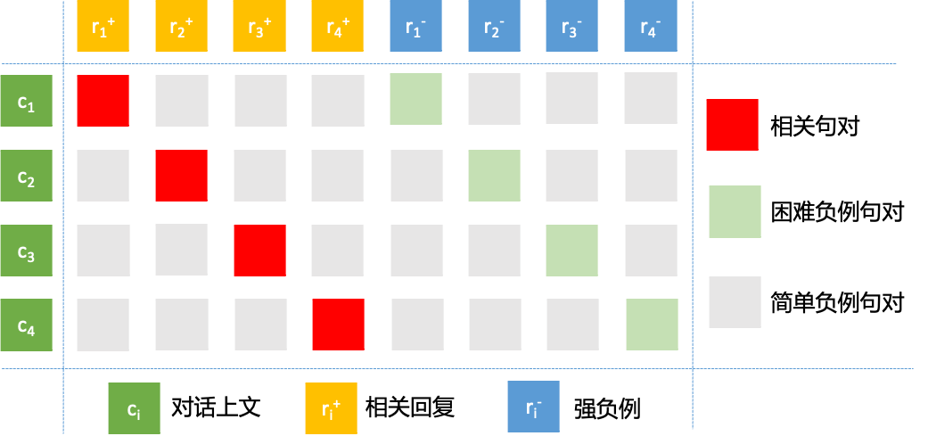 我们选择了方式一,这是因为对话中Context与Response尽管存在一定的多样性,但是总体上来说相比搜索系统中的Query-Document还是具备很强的对应关系,Response本身提供了足够的监督信息来区分不同的Context。