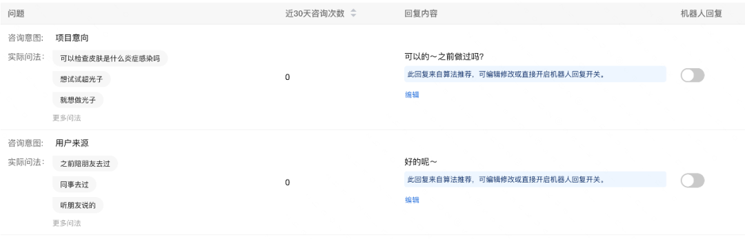商家IM中,除了商家在线时提供话术推荐辅助人工能力之外,我们也在商家离线时提供智能客服自动回复能力,解决夜间无人值守的问题。其中首要的步骤就是帮助商家建立自定义知识库,在意图体系构建完成之后,除了存在默认答案的通用意图之外,部分特定意图仍需要商家手动填写答案。