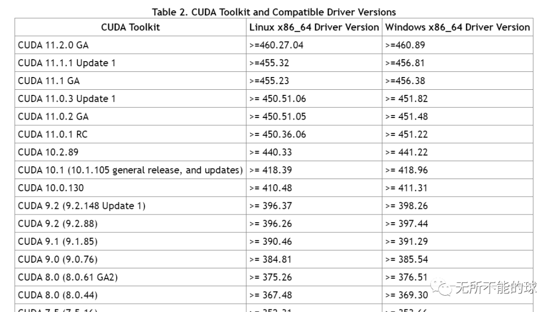 https://docs.nvidia.com/cuda/cuda-toolkit-release-notes/index.html 查看显卡驱动支持的cuda版本号