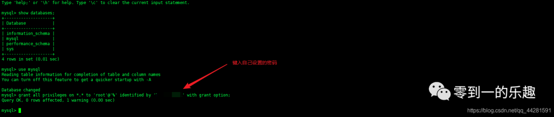 grant all privileges on *.* to 'root'@'%' identified by '密码' with grant option;