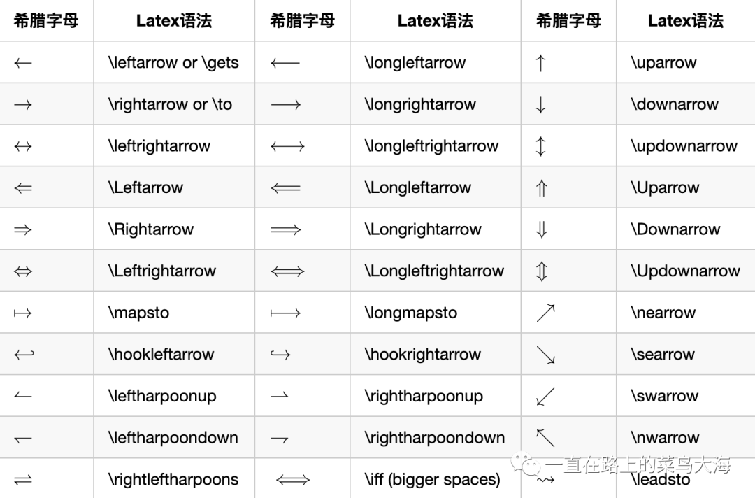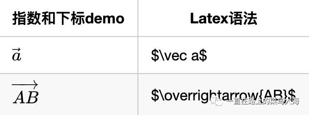 5、向量(Vectors)通常用上方有小箭头(arrow symbols)的变量表示。这可由 \vec 得到。另外两个命令 \overrightarrow 和 \overleftarrow 在定义从A到B的向量时非常有用。