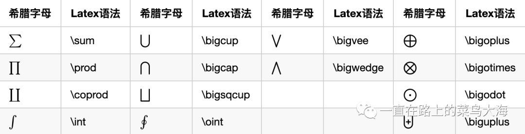 7、积分运算符号(integral operator)用 \int 来生成。求和运算符(sum operator)由 \sum 生成。乘积运算符(product operator)由 \prod 生成。上下限分别用^和_表示。