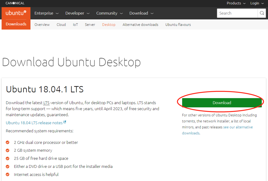 Ubuntu18.04的下载链接为:https://www.ubuntu.com/download/desktop