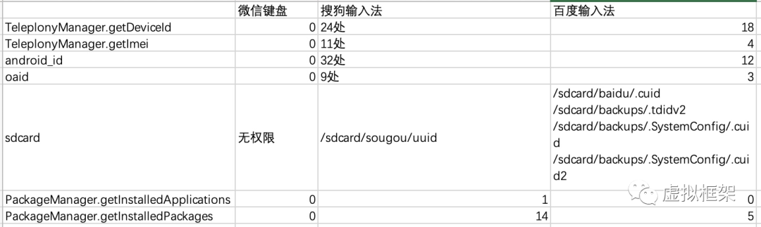 在设备跟踪方面,最常见的方法就是:imei android_id / oaid / 自己生成 id 放 sdcard;继续反编译微信键盘和搜狗输入法: