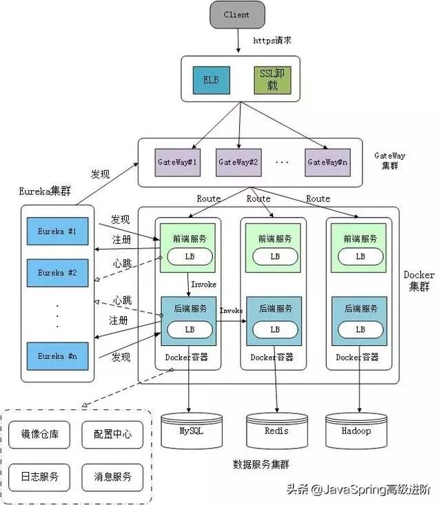 服务网关和微服务都会用到服务注册和发现来调用依赖的其他服务,各服务集群都能通过配置中心服务来获得配置信息。