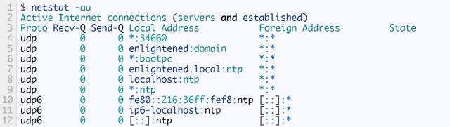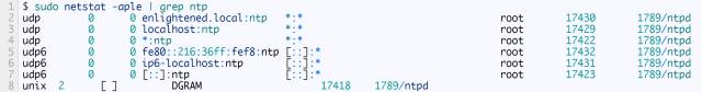 从这里可以看到 ntp 服务正在运行。使用 grep 命令你可以查看 http 或 smtp 或其它任何你想查看的服务。