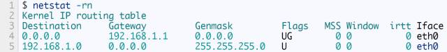 使用 -r 选项打印内核路由信息。打印出来的信息与 route 命令输出的信息一样。我们也可以使用 -n 选项禁止域名解析。