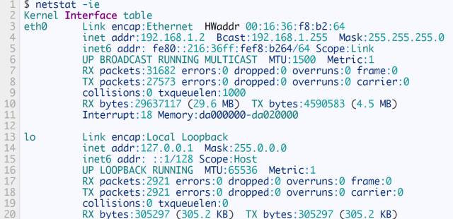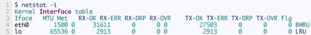 netstat 也能打印网络接口信息,-i 选项就是为这个功能而生。