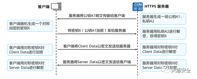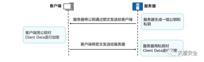 服务器生成一组密钥对,即公钥和私钥,这两个密钥是成对出现的,一个用于加密信息,另一个则用于解密信息,通信双方无需事先交换密钥就可以保密通信,通常以公钥作为加密密钥,私钥作为解密密钥。