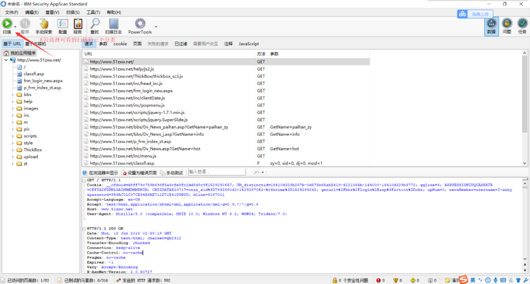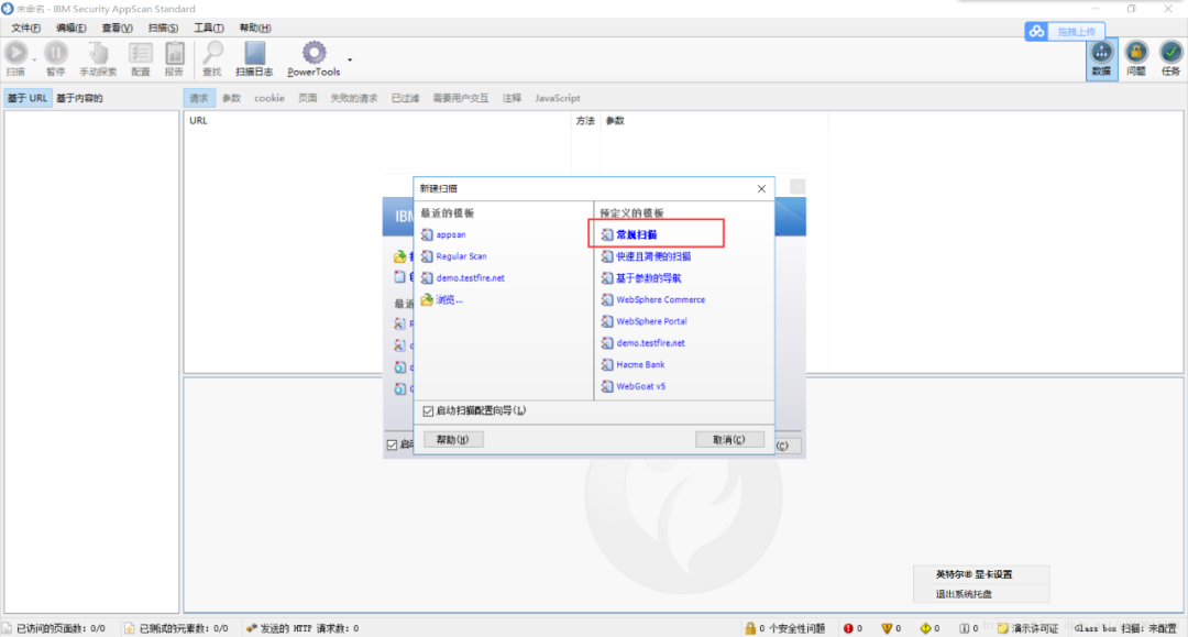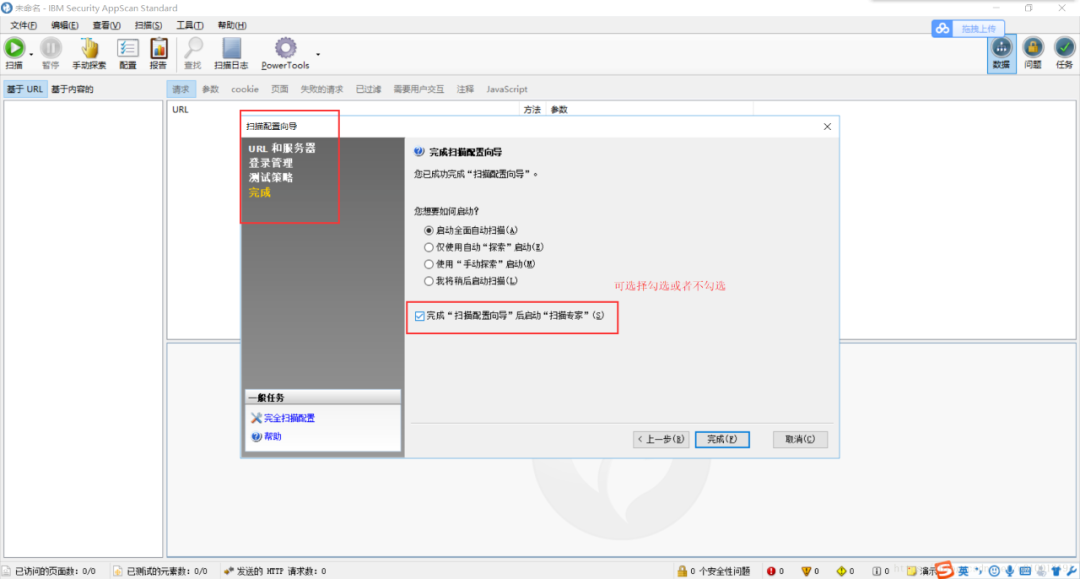 4、appscan扫描分三类:完全扫描、仅探索、仅测试。