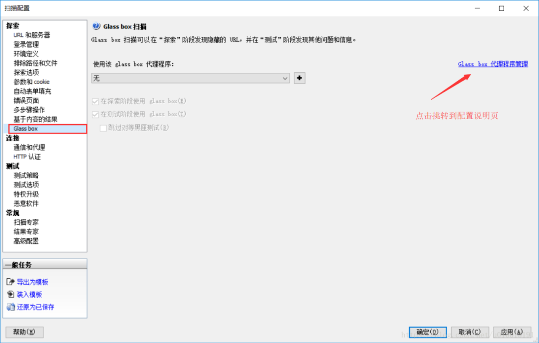 10)扫描配置-Glass box:对系统安全性要求比较高可以进行配置(配置后扫描更准确,可能扫描出来的安全性问题较多)