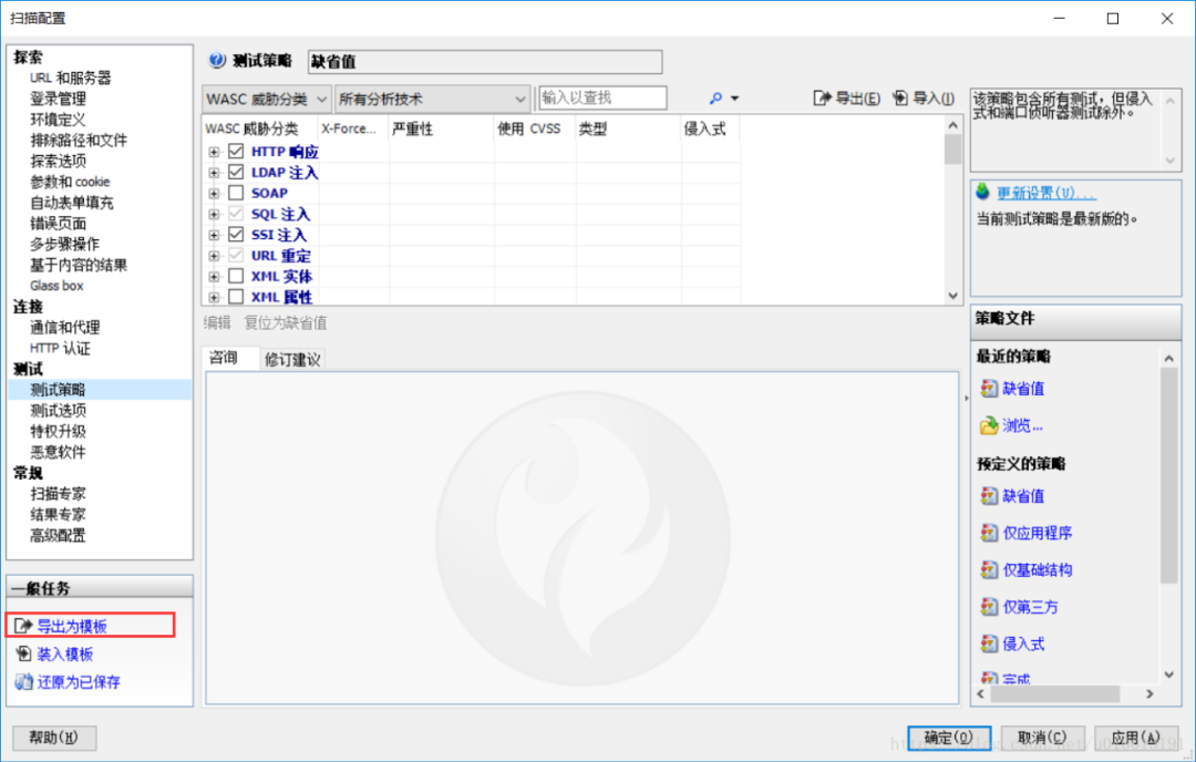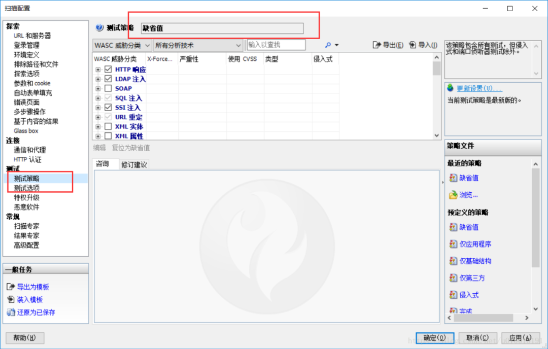 12)扫描配置-测试策略和测试选项:可根据具体需要进行配置,不清楚直接选择缺省值即可。