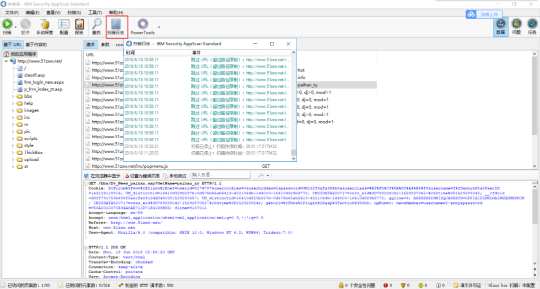 AppScan是IBM的一款web安全扫描工具,可以利用爬虫技术进行网站安全渗透测试,根据网站入口自动对网页链接进行安全扫描,扫描之后会提供扫描报告和修复建议等。AppScan有自己的用例库,版本越新用例库越全(用例库越全面,对漏洞的检测较全面,被测试系统的安全性则越高)2)通过分析,使用扫描规则库对修改的HTTP Request进行攻击尝试3)分析 Response 来验证是否存在安全漏洞