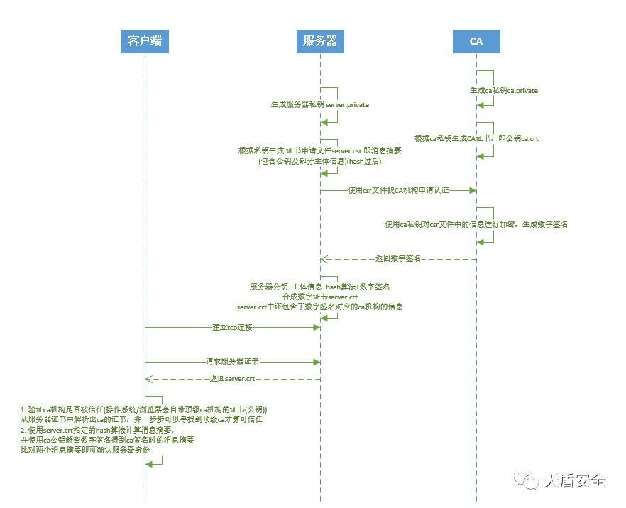 服务器的身份一般通过证书的方式进行验证,服务器的证书一般都会在权威的CA机构进行签名,客户端收到服务器证书后,