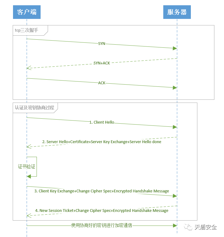 后续消息通过协商的密钥进行加密,防篡改和防监听