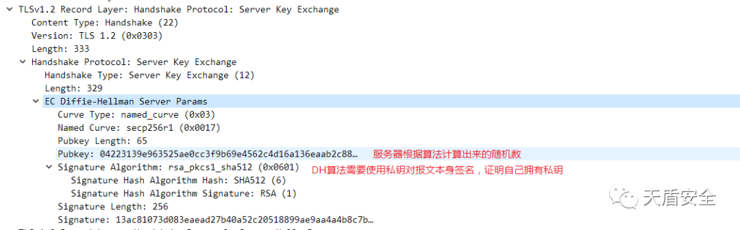 Server Key Exchange 服务器发送协商对称密钥过程中的必要参数