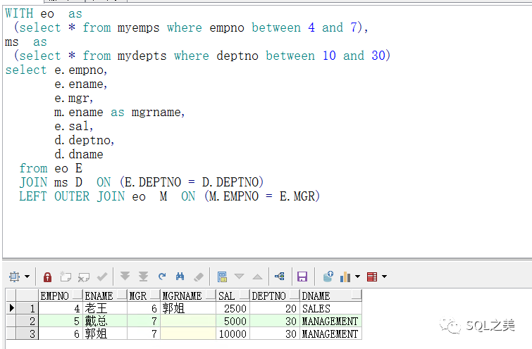 总结一下,就是一句话:WITH query_name子句允许将名称分配给子查询块。然后,通过指定查询名称,可以在查询中的多个位置引用子查询块。Oracle通过将查询名作为内联视图或临时表来优化查询 .