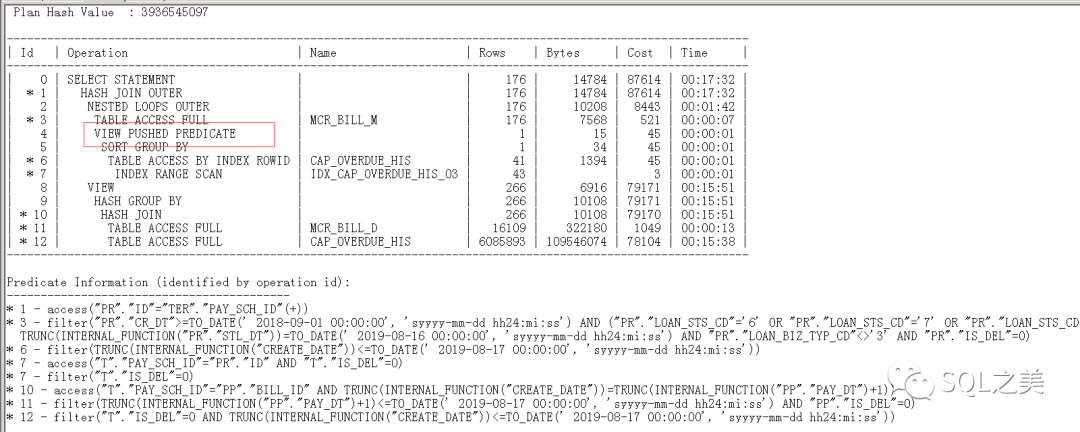 发现 MCR_BILL_M表与CAP_OVERDUE_HIS表走了谓词推入,CAP_OVERDUE_HIS表与MCR_BILL_D表走了全表扫描。