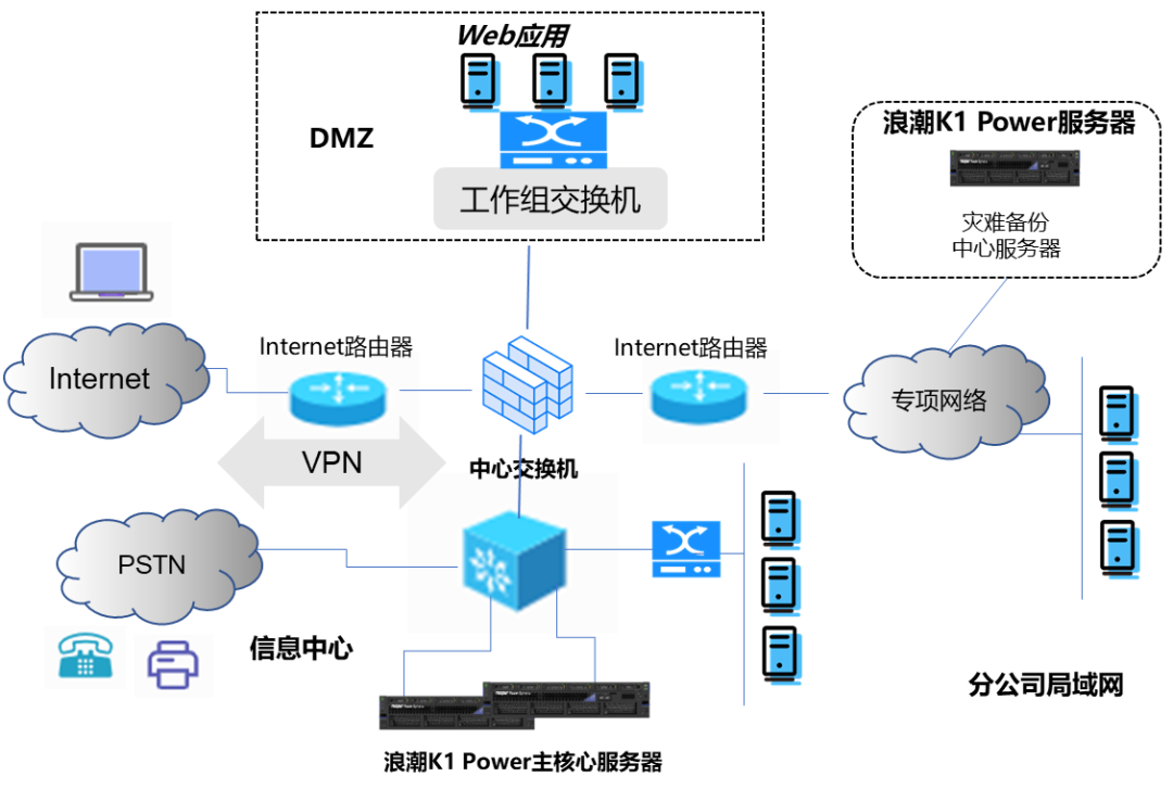 中科软寿险核心业务系统LIS的系统架构分为生产环境、开发环境以及安全隔离区。其中,生产环境主要由数据库服务器、应用服务器和Web服务器组成,主数据库服务器推荐使用浪潮K1 Power高端服务器承载,可根据实际需要配置三种服务器;开发环境则主要由开发服务器组成,而安全隔离区中则主要有电子商务前置机、银保通前置机以及vpn连接前置机。