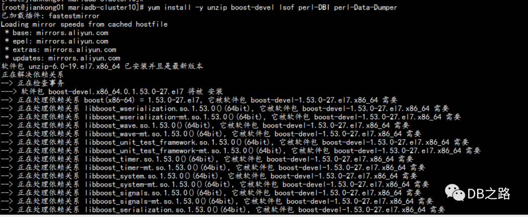 yum install -y unzip boost-devel lsof perl-DBI perl-Data-Dumper