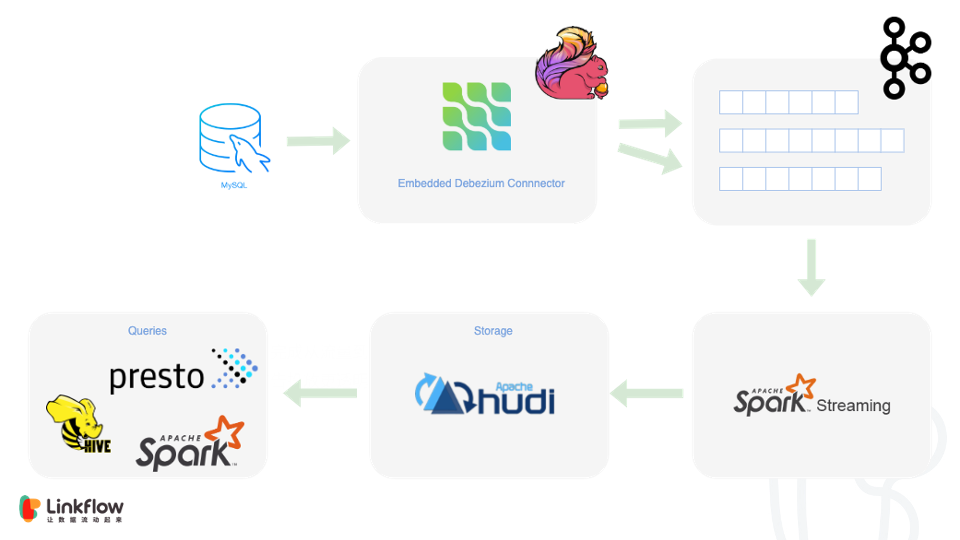 最上层我们使用了 Presto 作为分析引擎,提供数据即席查询的能力。由于我们使用的 Hudi 版本是0.6.0,与 Flink 的集成还没有发布,所以我们不得不采用 Flink + Spark 双擎的策略,使用 Spark Streaming 将 Kafka 中的数据写入 Hudi。