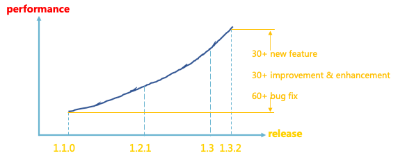 DolphinScheduler 最近发布的 1.3.2 版本,性能较 EasyScheduler 有 2~3 倍的提升,主要体现在调度策略、执行效率、单位时间吞吐、堆积处理等几个核心性能指标上。