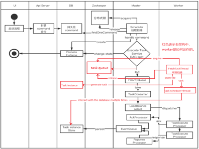 在 DolphinScheduler 新架构(黑线)中 Master 职能更加丰富,Worker 则更加专注于执行。