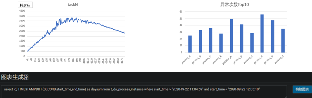l近 M 天内执行时长的 TopN 实例或异常次数最多的 TopN 实例的柱状图;