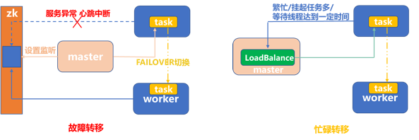 Ø故障转移:失败策略可选配置“故障转移”,工作节点故障后,自动 failover 切换到一台运行正常的工作点上重试