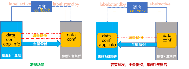 l容灾:在实现跨集群调度的基础上,主备集群容灾的全量与增量数据备份都可以通过调度定时完成,并通过调度提供的异步调度与事件通知机制来监管备份过程。