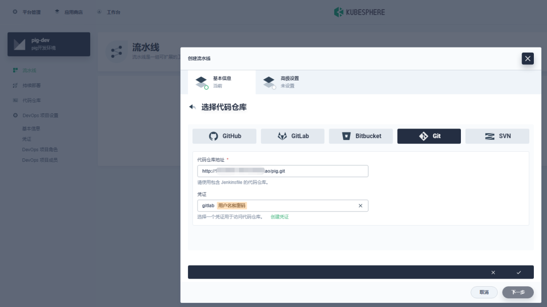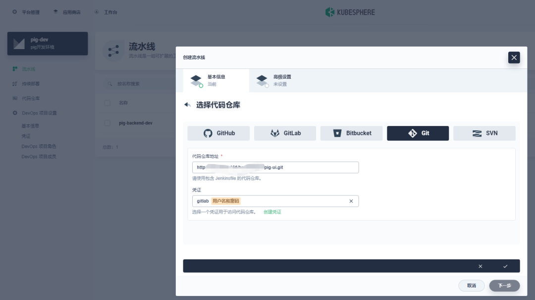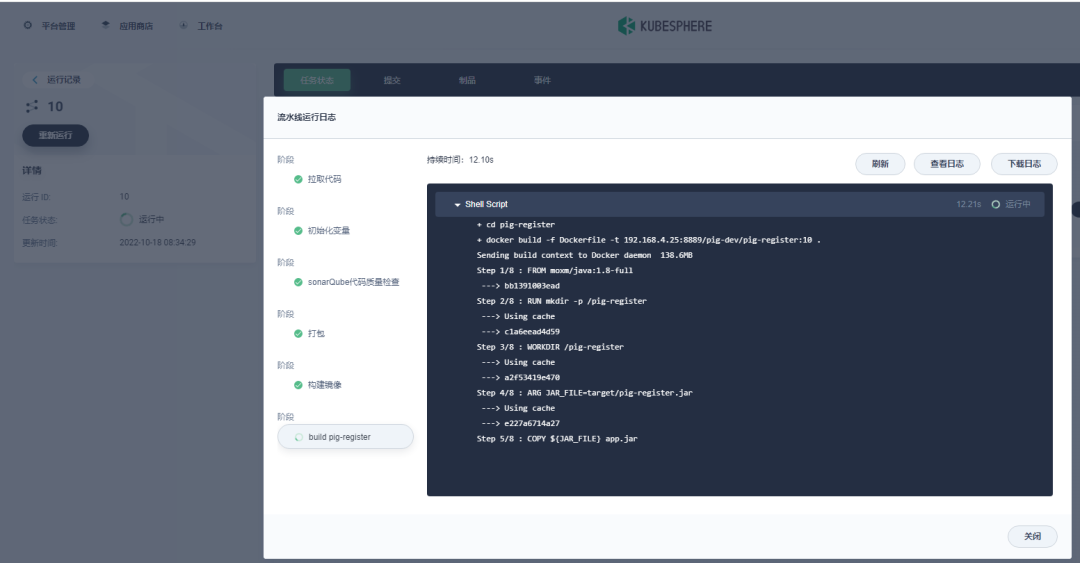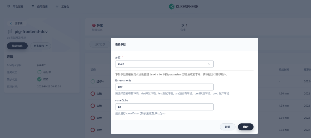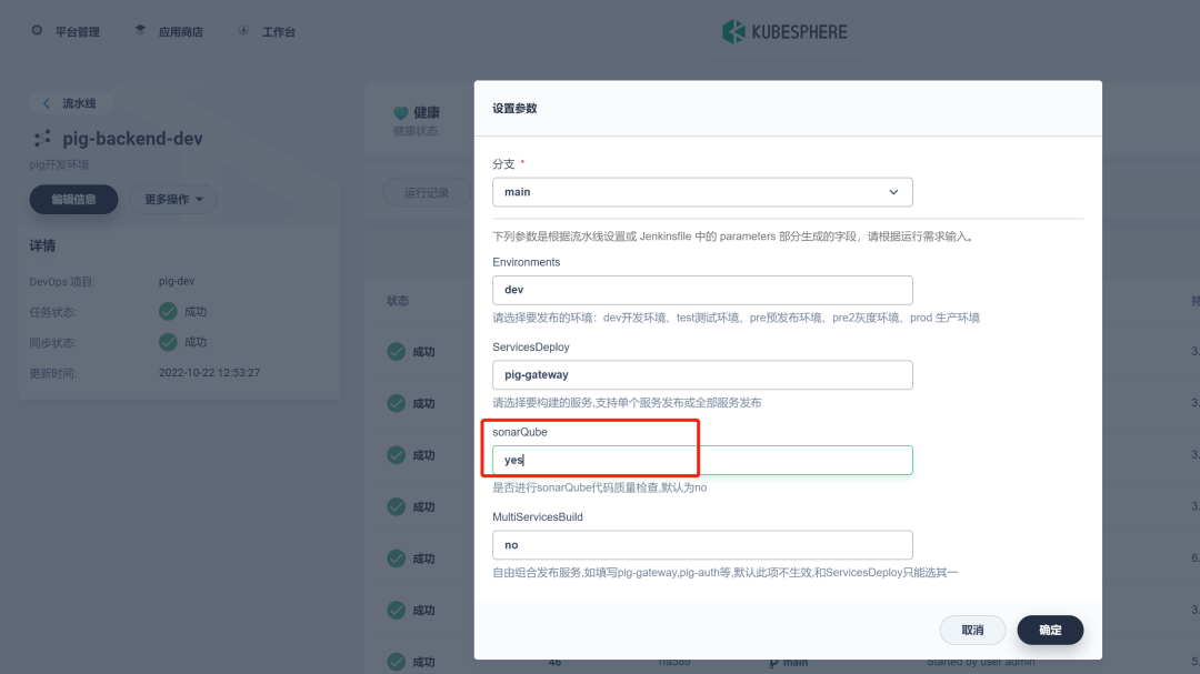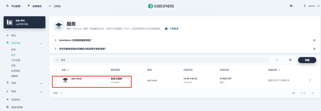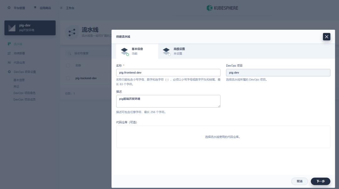 Pig 所依赖的后端微服务为无状态服务。利用 KubeSphere 服务创建 DevOps 流水线项目来部署这些微服务。