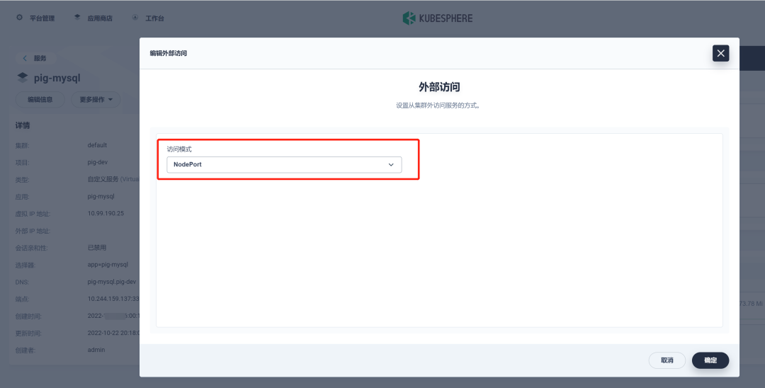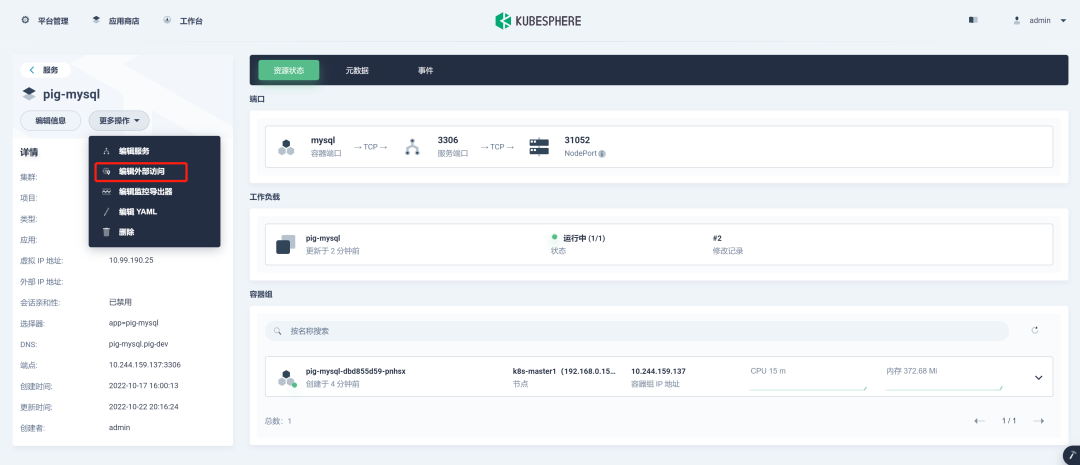 进入 pig-mysql 服务,编辑外部访问 , 从而访问 MySQL 导入 pig 的数据: