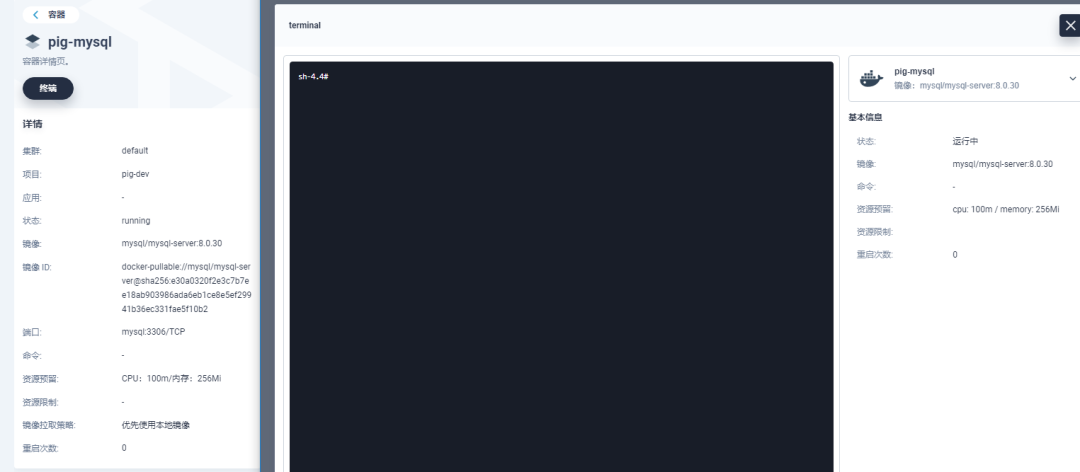 ❝MySQL 镜像采用 pig 项目 db 下 Dockerfile 中的版本,也可自己指定。