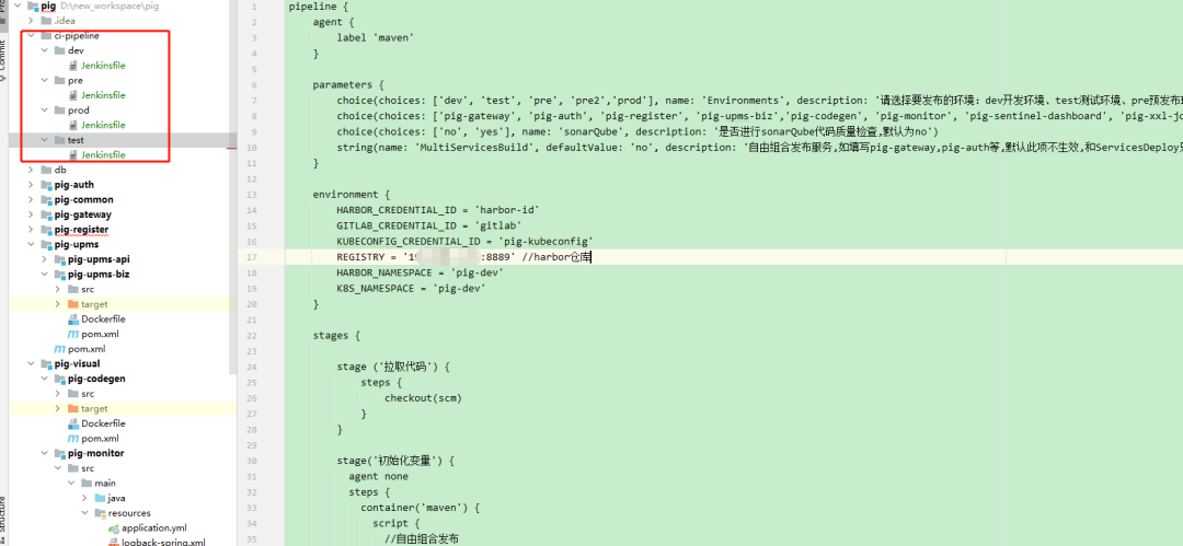 choice(choices: ['pig-gateway', 'pig-auth', 'pig-register', 'pig-upms-biz','pig-codegen', 'pig-monitor', 'pig-sentinel-dashboard', 'pig-xxl-job-admin','all'], name: 'ServicesDeploy', description: '请选择要构建的服务,支持单个服务发布或全部服务发布')