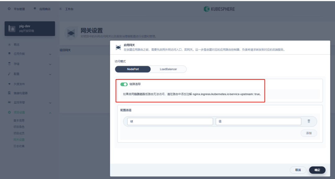 ❝KubeSphere 中的项目网关,开启后会自动安装 IngressController。
