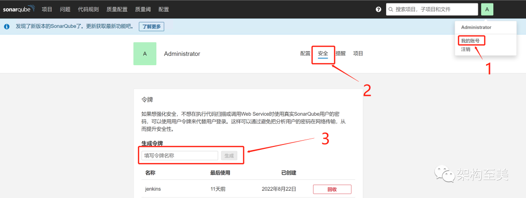 在 sonarQube 中生成 token
