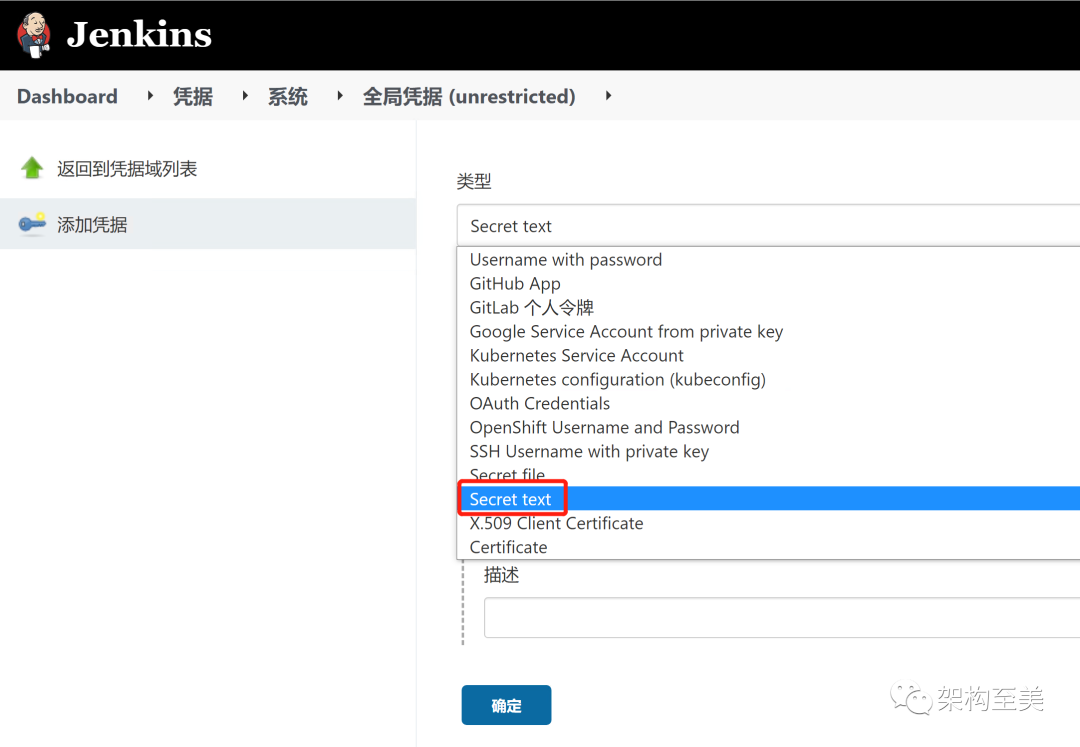 ❝选择 Secret text 作为凭证类型。